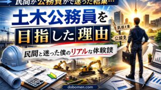 土木公務員を目指した理由 土木公務員を目指した理由|民間と迷った僕のリアルな体験談 土木公務員を目指したリアルな理由を紹介。転勤の有無や給料と時間のバランス、工事全体に関わるやりがいなど、就職先選びに役立つ体験談をお届けします。 2025.06.04 土木公務員を目指した理由